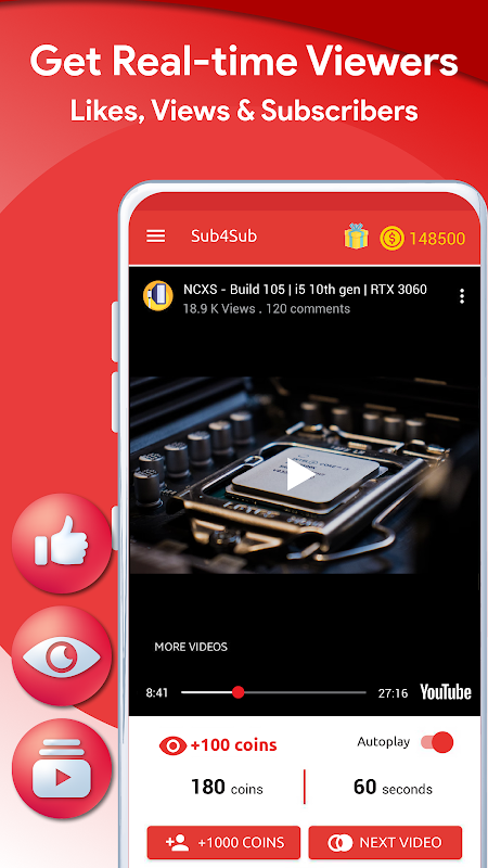 Sub4Sub برای ویدیو و مشترکین کانال بازدید می کند. نمای واقعی و فرعی