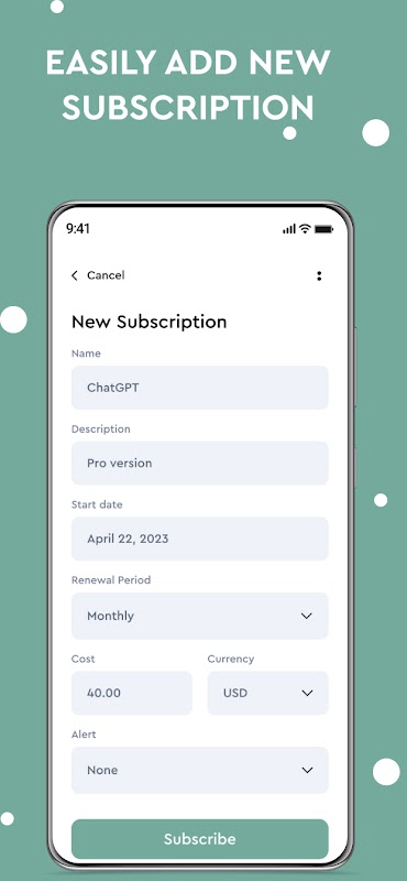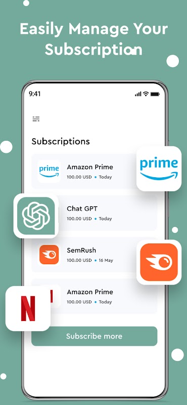 MergePay Subscription Manager دارای یک ردیاب اشتراک قدرتمند با بیش از 200 سرویس محبوب در حال حاضر است. از Netflix گرفته تا Spotify، به راحتی اشتراک های خود را اضافه و مدیریت کنید. ردیاب نمای جامعی از هزینه های شما ارائه می دهد و به شما امکان می دهد هزینه های خود را نظارت کنید و تاریخ های پرداخت آینده را پیگیری کنید.