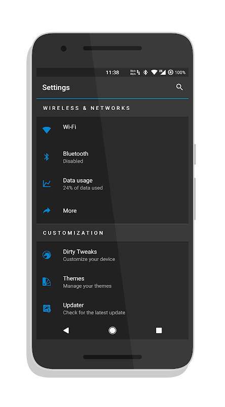 This theme provides a beautiful, cool blue and steaming, hot red accent on a nice, dark grey background to leave you with the feeling of a totally new device!