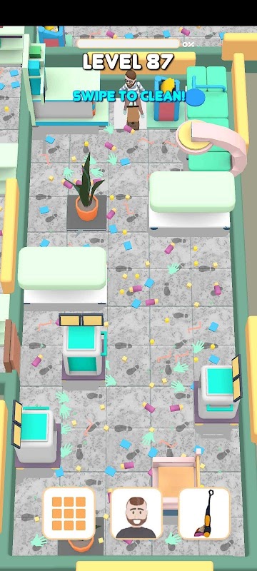 Suck it Up! is a fun and relaxing puzzle game. Swipe to move the character across the rooms. See him running and cleaning the rooms with vacuum cleaner.