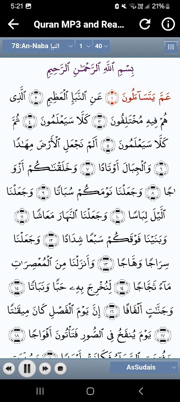 نسخههای قدیمی Sudais Quran JUZ AMMA Offline