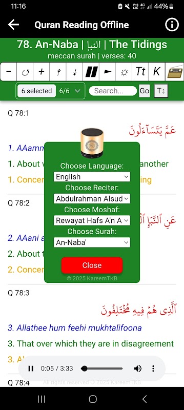 زیبایی و قدرت **جز عما (قسمت سی ام قرآن کریم)** را با تلاوت روحی **شیخ عبدالرحمن السدیس**، یکی از نمادین ترین صداهای جهان اسلام، تجربه کنید. این برنامه ساده و سبک قرآن برای کمک به شما در **خواندن، گوش دادن و درک ** Juz Amma به راحتی - حتی بدون دسترسی به اینترنت - طراحی شده است.