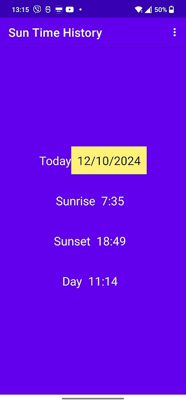 طلوع، غروب خورشید و مدت روز را برای یک مکان مشخص محاسبه می کند. نیازی به اینترنت ندارد. موقعیت مکانی از GPS گوشی شما گرفته شده است و پس از گرفتن آن دیگر نیازی به آن نیست، مگر اینکه تصمیم به تغییر مکان داشته باشید.
