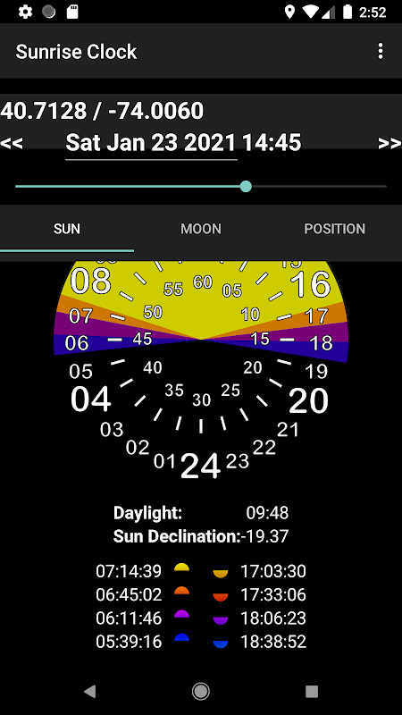 - برنامه موقعیت خورشید و ماه را نمایش می دهد