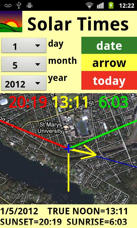 دکمه وسط به نام پیکان نمایش یک فلش زرد، که در جهت گوشی تراز شود. این مفید برای شناسایی زوایای خورشیدی در رابطه با موقعیت کنونی خود را است.