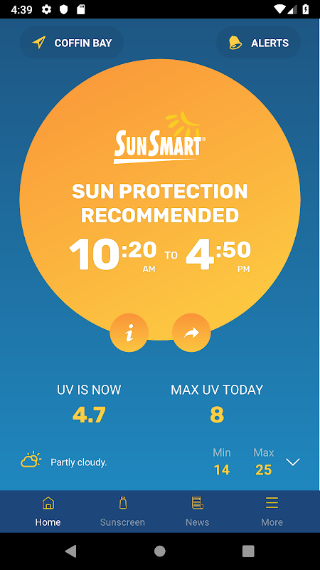 برنامه SunSmart رایگان با استفاده از اطلاعات پیش بینی شده از اداره هواشناسی و داده های زنده UV از محافظت در برابر اشعه استرالیا و آژانس ایمنی هسته ای، شما را با استفاده از زمان محافظت از خورشید، ساده می کند.