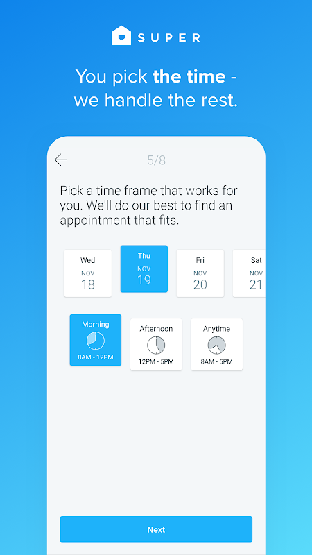 - برنامه ریزی قرار ملاقات: این که آیا شما نیاز به تعمیر، جایگزینی، و یا کار نگهبان برای کمک به شما در حفظ خانه خود، برنامه فوق العاده می تواند کمک کند. فقط قرار ملاقات را تعیین کنید و یک Super Pro در آنجا برای انجام این کار وجود دارد.