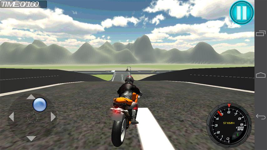2 A button that Left of the screen (there are four arrow icon) to control the direction of the motorcycle, the top right of the screen there is a pause button.