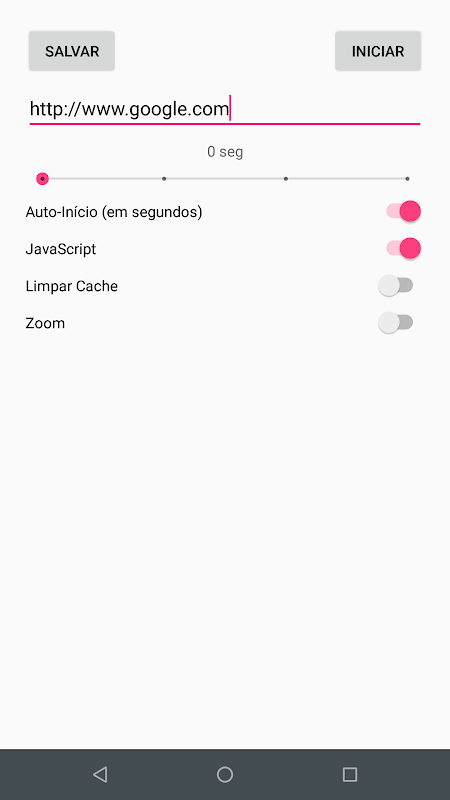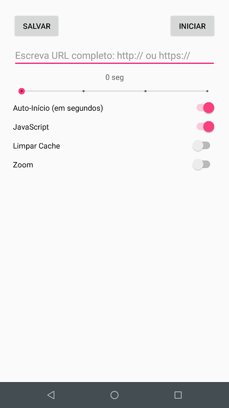 Em configurações, você pode personalizar o tempo de inicialização, assim como limpeza do cache, zoom, auto-início com tempo personalizado.