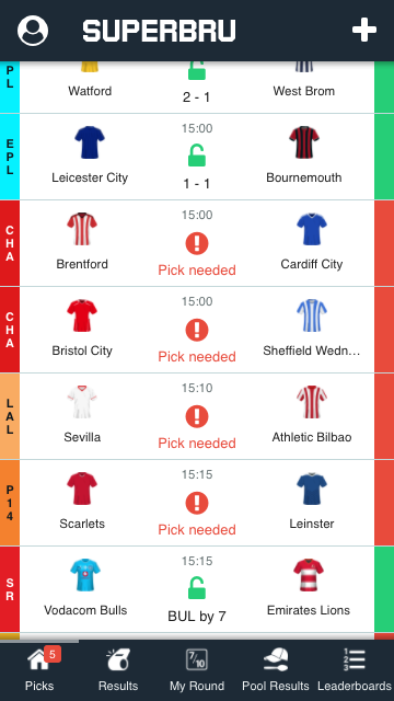 بازی اصلی ما که همیشه چالش برانگیز است، مهم نیست چقدر بازی می کنید. برندگان و امتیازات هر مسابقه در آن مسابقات را پیش بینی کنید. بر اساس سیستم امتیازدهی آزمایش شده و آزمایش شده ما، برای دقت پیشبینیتان، امتیاز دریافت خواهید کرد، که شما را در مقابل دوستانتان در استخرهایی که در آن رقابت میکنید و سایر اعضای انجمن Superbru رتبهبندی میکند.