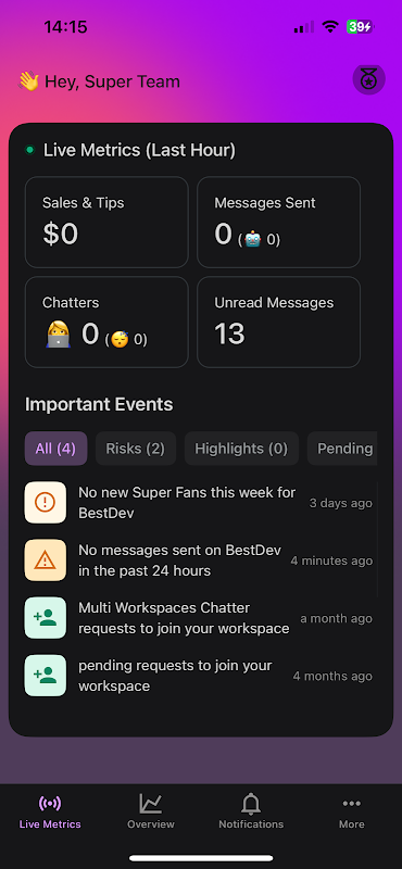 اعلانهای فشاری در زمان واقعی از فعالیت حساب شما