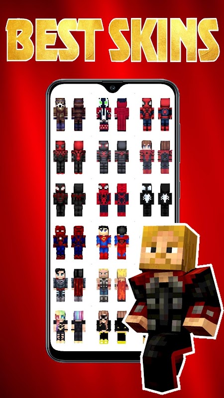 The app includes superhero skins for boys and girls, thor skins, spiderman, batman, ant-man, deadpool, hulk, marvel skins, dc skins, joker, teenage mutant ninja turtles, daredevil, venom, flash and many more.