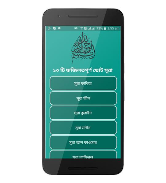 আমারা আমাদের এই অ্যাপটিতে কোরআর শরীফের সংক্ষিপ্ত 10 টি সূরা নিয়ে তৈরী করা হয়েছে.