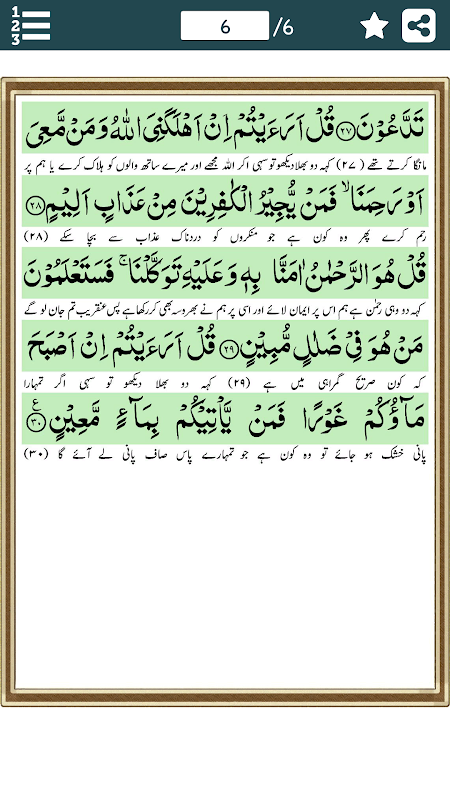سوره ملک با قلم عربی به همراه ترجمه اردو نوشته شده است.