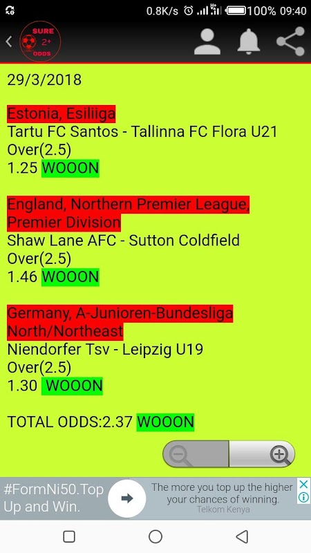 • برنامه‌نما Sure 2+ Odds عکس از صفحه