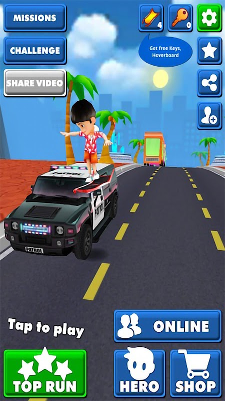 Rush as fast as you can manage, dodge the oncoming trains and buses. Careful of the rolling buses on the highway! Intuitive controls to run left or right, jump in the sky to obtain more coins, excited slide to safety!