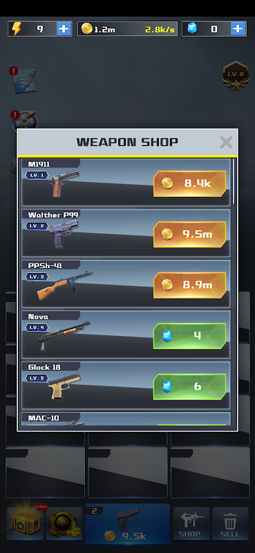 چندین سلاح را می توان در نتیجه تیراندازی خوب ارتقا داد.