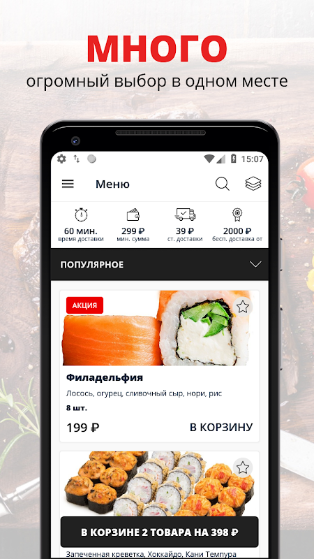 Delivery of pizza, sushi and rolls on the "Sushi King" - it is an opportunity in the comfort of your home or office during the working day to enjoy the refined and tasteful Japanese and Italian cuisine!