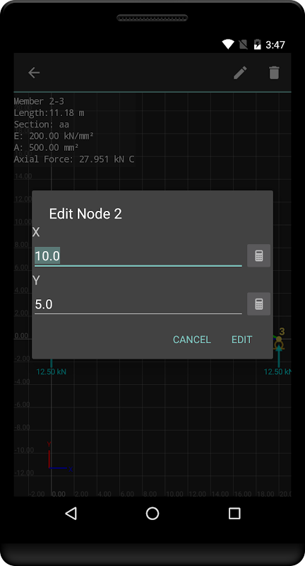 -محاسبه نیروی محوری در تمام اعضا و نمایش آنها به صورت گرافیکی.