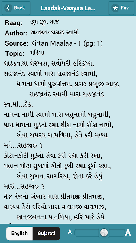 4. ضامن به سرعت بین زبان انگلیسی و متن گجراتی برای kirtan