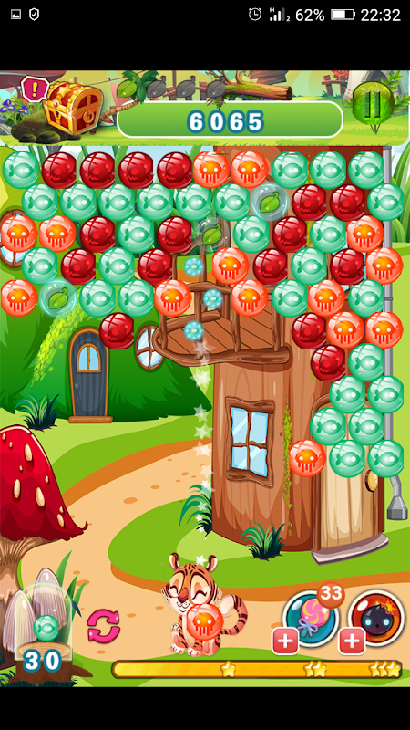 Little Tiger to help you to blow bubbles by shooting bubble matches the colors of bubbles,
