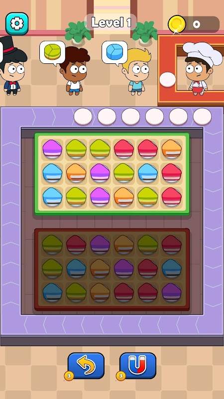 Match 3 cakes of the same color according to customer requirements. Just tap to place them into the stack.