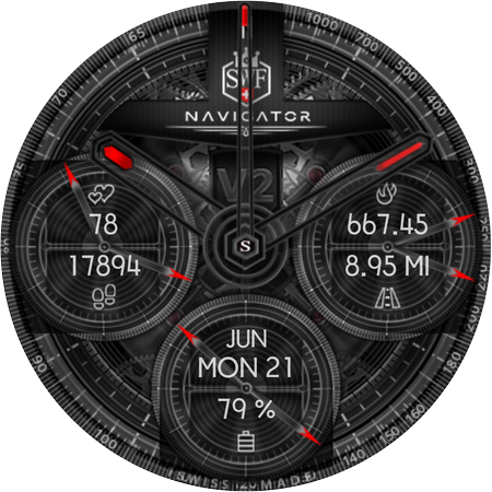 با طراحی واضح و مدرن، SWF Navigator V2 Digital Edition برای راهنمایی شما در زمان هر روز ساخته شده است. ساعت متحرک فوقالعاده در پسزمینه را تحسین کنید، در حالی که در پیشزمینه، اکثر اطلاعات ساعتهای هوشمند در کرنومترها با یک نگاه نمایش داده میشوند.