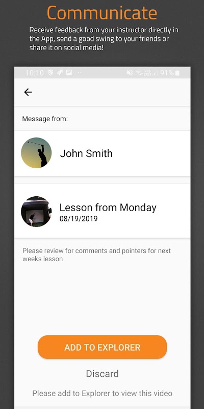 - فیلم ها را با سایر کاربران و مربیان Swing Catalyst به اشتراک بگذارید