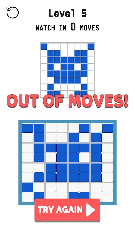 Swipe on any tile row or column to match it to the shape on top. Each level has a limited number of moves. Can you do a frog in four? A coffee cup in one? Harder than you think!