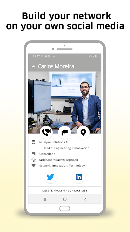 - ایجاد اتصالات: سایر شرکت کنندگان را به لیست مخاطبین خود اضافه کنید و شبکه شخصی Twitter و LinkedIn خود را گسترش دهید.