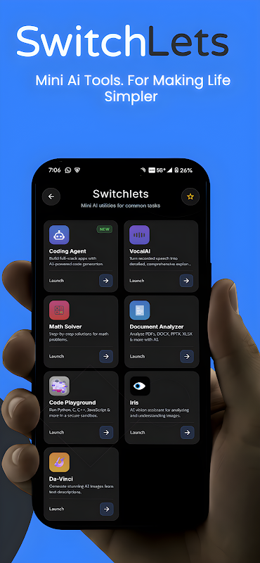SwitchAi brings the power of **50+ AI models**—including premium and pro-tier systems—into one fast, beautiful, and intelligent app. Enjoy **unlimited AI chat, voice, tools, coding, creation, analysis**, and more with no limits, no paywalls, and no complications. SwitchAi is built to be the most powerful all-in-one AI app for everyday users, students, developers, creators, professionals, and explorers.