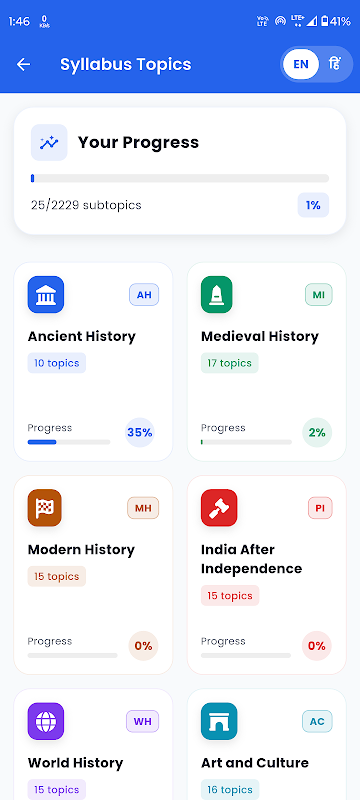 این یک برنامه برنامه درسی همه در یک است که برنامه درسی مفصل با موضوعات خرد🥳 را به انگلیسی و हिन्दी برای امتحان cse upsc ارائه می دهد، مانند: