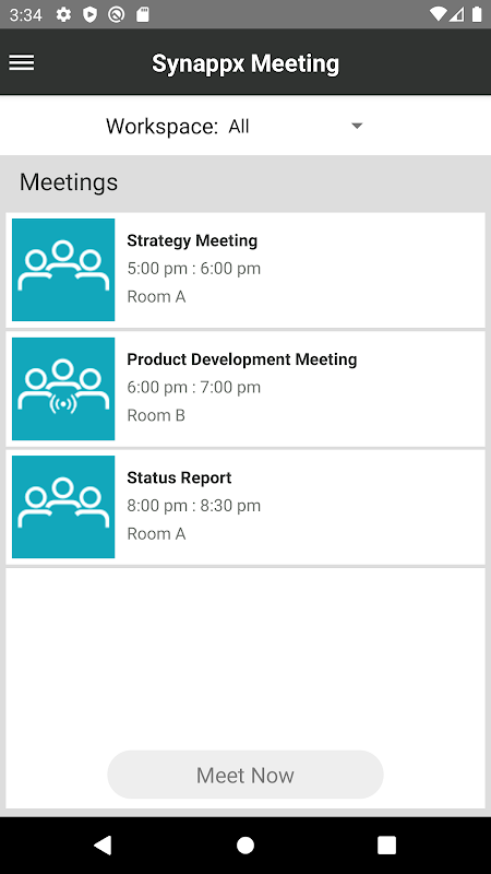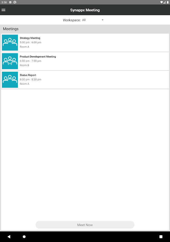 - Synappx Meeting can automatically update the calendar and free up the meeting room if the meeting should end early.