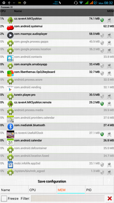 NOTE: SysMon gathers CPU / memory and network traffic data on the background using background service and thus this service consumes a bit of CPU power + battery. Remember you can end SysMon ANYTIME by clicking on Exit to save CPU/battery and restart it anytime from your Home launcher or list of installed application.