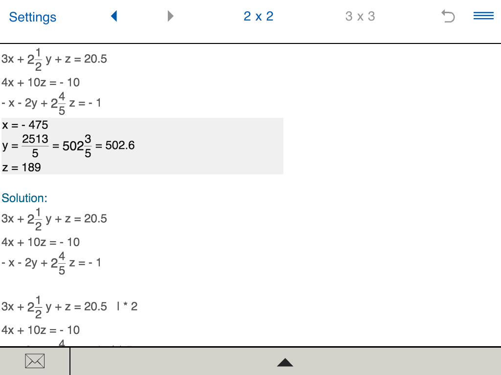 حسابگر سیستم معادلات خطی را با دو و سه متغیر حل می کند.