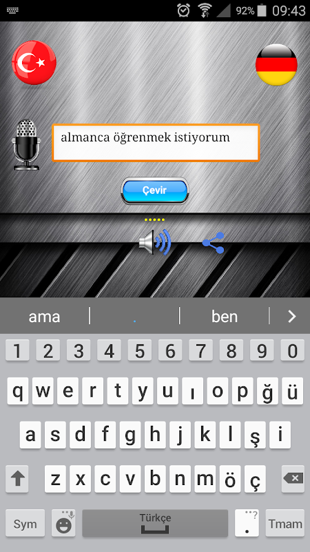 Turkish German text translation and dictionaryVoice translationpronunciation listening