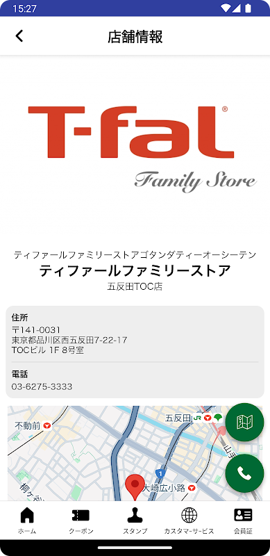 برنامه رسمی T-fal "Tefal Family Store" برنامه ای است که معاملات عالی را ارائه می دهد، مانند کوپن هایی که می توانند در فروشگاه Gotanda TOC استفاده شوند و پیشنهادات ویژه برای رویدادهای فقط اعضای برنامه.