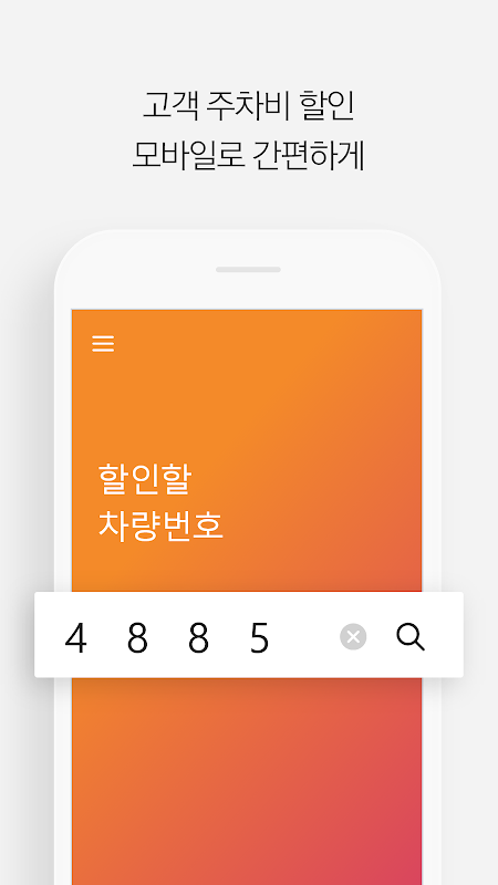 본 어플리케이션은 T map 주차와 제휴를 맺은 입주사를 위한 주차할인 관리 서비스입니다. 주차요금 결제, 주차할인 등 일반 주차 서비스를 필요로 하시는 고객님은 ‘T map 주차’ 앱을 이용해주시기 바랍니다.