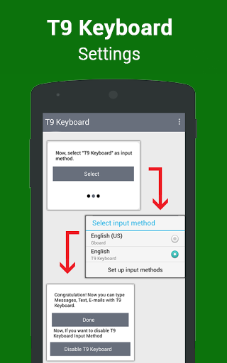 You can use this easy T9 typing keyboard to write in T9 text. No need to copy and paste T9 text. The best T9 keyboard for Android will allow you to write in an T9 language. Now any one can compose T9 emails, post on Social Media and write messages through English to T9 Keyboard.