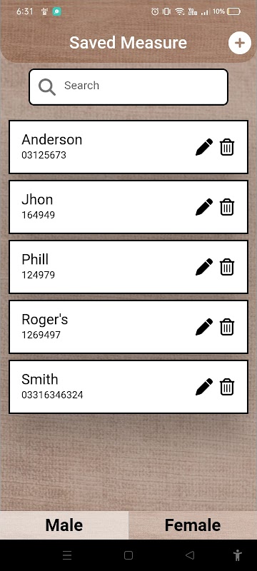 Tailor App بهترین برنامه صرفه جویی در اندازه گیری خیاط آفلاین است که در آن می توانید اندازه گیری های کاربر را به روز رسانی و حذف کنید. شما همچنین می توانید این اندازه گیری ها را به اشتراک بگذارید. در Tailor App، من میتوانم اندازههای مرد و زن را متفاوت اضافه کنم، بنابراین شما میتوانید هر یک از آنها را به انتخاب خود اضافه کنید.