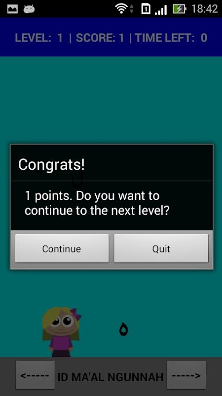 بعد، بازیکن نیاز به حداقل 1 نقطه برای ادامه به سطح بعدی. اگر نقطه است زیر 1، بازیکن باید 2 گزینه که آیا به بازی دوباره برای آن سطح یا ترک بازی.