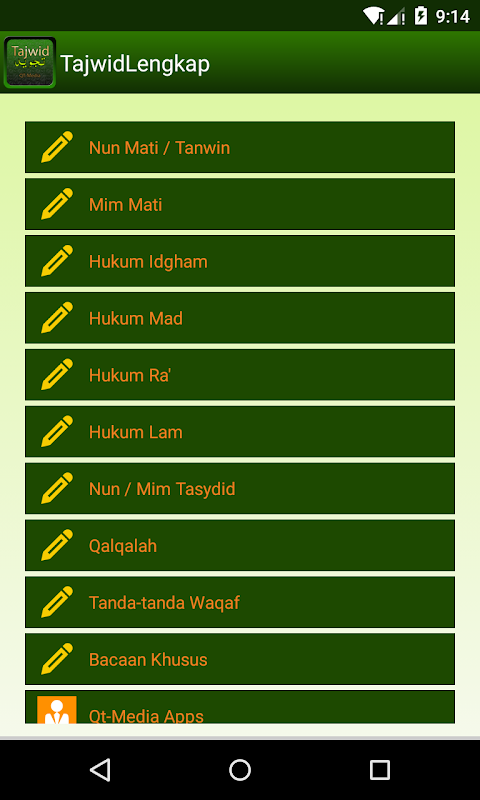 APKPure از تأیید امضای نرمافزار برای اطمینان از دانلودهای بدون ویروس APK Tajwid Lengkap Qt-Media استفاده میکند.