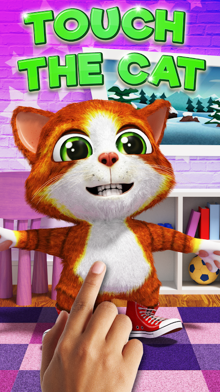 - Touch his belly, head, hands and legs to see how funny things cat does.