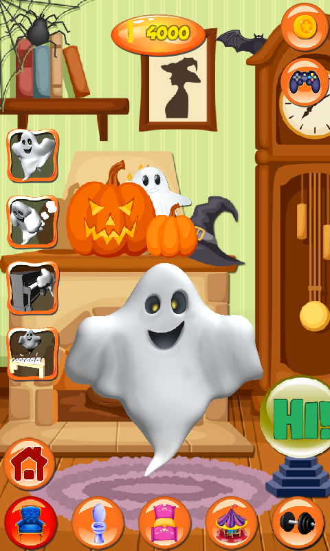 This cool talking ghost would like to show you around his newly bought house. He is extremely talkative and will remember everything you have told him. You will be laughing out loud when you hear your own words in his funny voice. This specter is benevolent and is ready to play. He would even let you slap him, and he cannot wait to show you his hidden talents. Check out his best dancing moves, or listen to him playing the piano or the xylophone. Well, they do. In his living room behind the jack-o’-lantern, an apparition is hiding. Don’t become scared when it starts laughing in an eerie way. All over the place spiders and bats are crawling, but you will not even notice them because you will have a blast talking to your pal. Grab this awesome opportunity and download for free the popular Talking Ghost game.