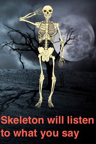 Talking Skeleton talks back everything you say in his voice. The Talking Skeleton loves entertaining you and becomes a Dancing Skeleton if you shake the phone. Talking Skeleton can fight back and gets hurt if you hit the skeleton.