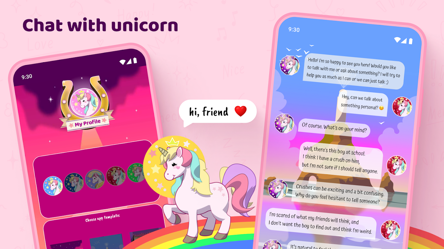 🦄Talking Unicorn (چت) یک برنامه عالی برای بچه ها است. برنامه شبیه سازی مکالمه هوشمند بین شما و تک فیلی Felipe. صحبت کردن تک شاخ به شما کمک خواهد کرد که استراحت، ایجاد شادی برای شما و به تمام سوالات خود را پاسخ دهید. برای اطمینان بسیار سرگرم کننده خواهید بود