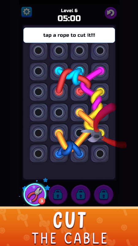 با پیشرفت در سطوح، چالشها پیچیدهتر میشوند و کابلها پیچیدهتر میشوند و مهارتهای شما را به حداکثر میرسانند. اما نترس! شما تقویتکنندههای قدرتمندی در اختیار دارید، مانند قیچیهایی که حتی سختترین گرهها را برش میدهند، و زمان انجماد که ساعت را متوقف میکند و به شما یک لحظه ذن برای استراتژی میدهد.