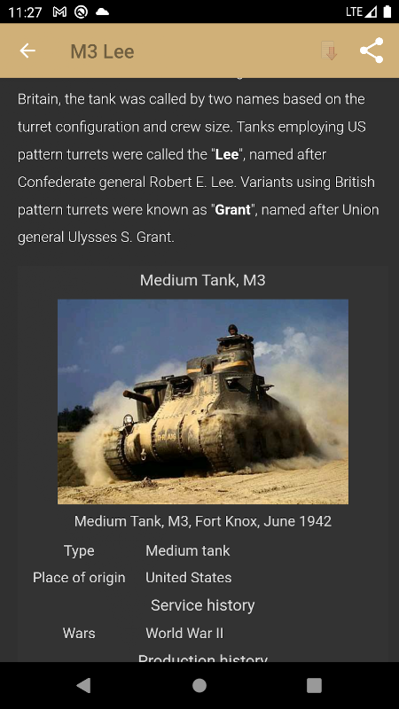 همچنین اطلاعاتی در مورد استفاده تاکتیکی تانک ها در جنگ، از جمله نحوه استقرار تانک ها و استراتژی هایی که در آنها مؤثرتر هستند، خواهید یافت. با قابلیت نشانک گذاری و ذخیره مخازن مورد علاقه، می توانید به راحتی از صفحه اصلی برنامه به آنها دسترسی داشته باشید و آزمون ها و سایر ویژگی های تعاملی به شما کمک می کند دانش خود را در مورد مخازن و تاریخچه آنها آزمایش کنید.