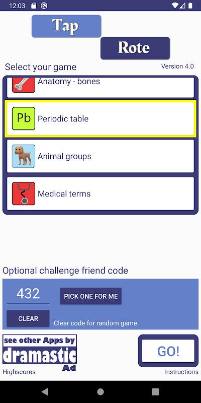 لیست های مفیدی مانند عبارات ، جداول تایمز ، آناتومی ، موسیقی ، اصطلاحات پزشکی ، جدول تناوبی ، دستور زبان انگلیسی ، کشورها و پایتخت. سرگرم کننده برای بازی انفرادی یا به چالش کشیدن دوستان و حتی کمی آموزشی.