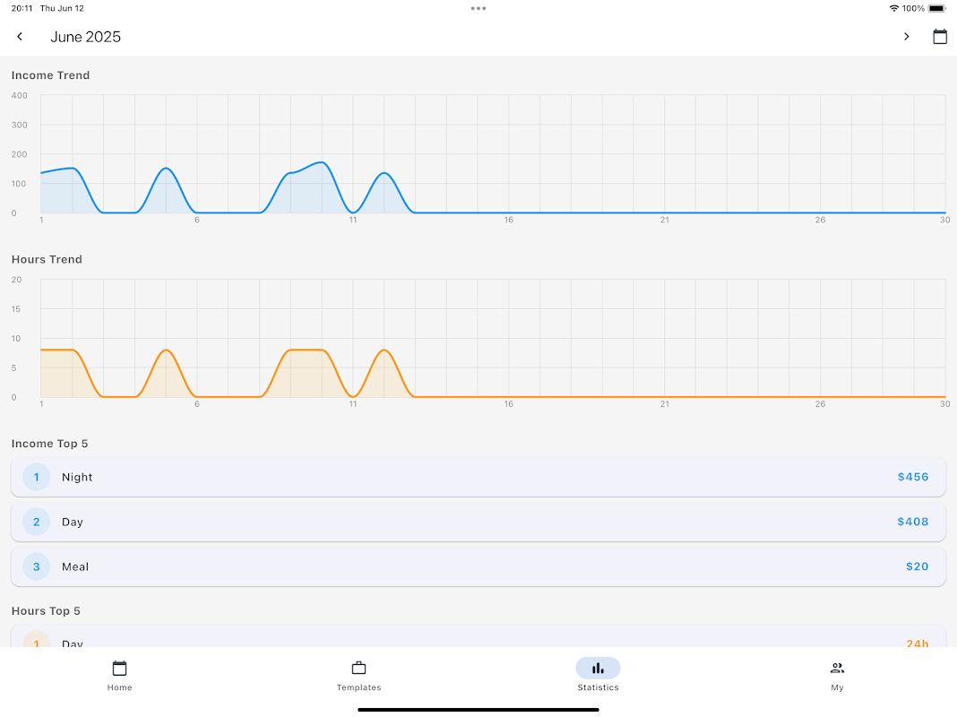 یک ردیاب ساعت کاری ساده و با کاربری آسان برای ثبت شیفت های روزانه و محاسبه خودکار ساعات و درآمد ماهانه شما.
